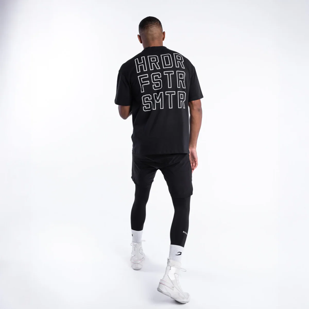 La T-shirt Boxraw HRDR FSTR SMTR Oversize nero è pensata per accompagnarti dentro e fuori dalla palestra con il giusto equilibrio tra traspirabilità , struttura e fluidità . Realizzata in cotone pettinato elasticizzato (92% cotone, 8% elastan), offre una vestibilità ampia e confortevole ideale per l’allenamento e il tempo libero. Il taglio oversize con spalla bassa garantisce libertà di movimento, mentre lo slogan HRDR FSTR SMTR stampato su petto e schiena è un richiamo costante alla mentalità Boxraw: allenati più duramente, muoviti più velocemente, combatti con più inte