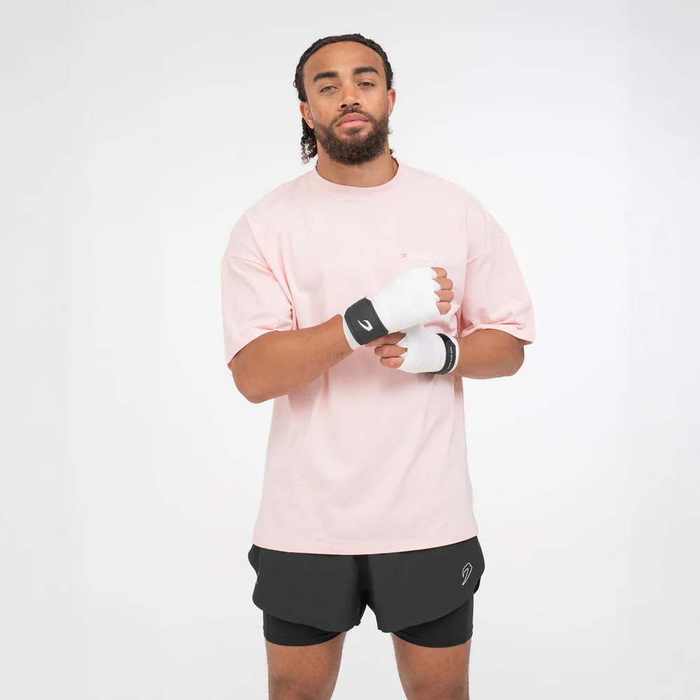 La T-shirt Boxraw We Don’t Play Boxing Oversize Rosa è dedicata a chi vive il pugilato con dedizione e rispetto. Realizzata in cotone elasticizzato (92% cotone pettinato, 8% elastan), assicura una vestibilità confortevole e grande libertà di movimento anche durante gli allenamenti più intensi. Il taglio oversize con spalla scesa offre uno stile moderno e rilassato, perfetto per il ring come per il tempo libero. Il logo Boxraw è stampato sul petto, mentre sul retro spicca l’iconico slogan WE DON’T PLAY BOXING®: un messaggio diretto a chi sa che la boxe è molto più di un gioco. Un capo essenziale per ogni fighter, dentro e fuori dalla palestra.