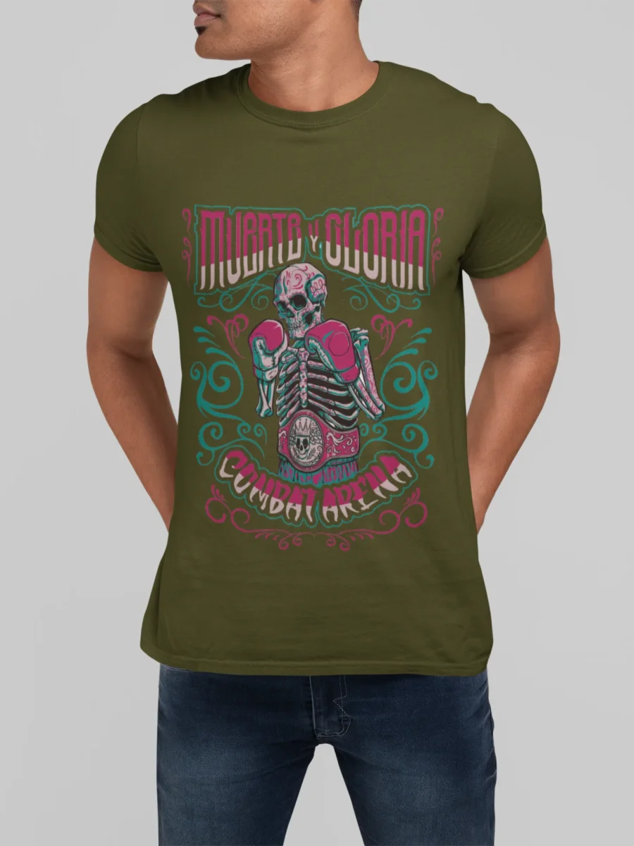 La T-shirt Combat Arena Muerte Y Gloria è dedicata al Pugilato e a chi lo pratica con passione. Il design originale strizza l’occhio al Messico, dove la Boxe è lo Sport Nazionale. Muerte Y Gloria richiama l’atmosfera messicana, le sue tradizioni e il culto della Nuestra Señora de la Santa Muerte. Indossa con orgoglio la T-shirt Combat Arena: lo stile moderno e il cotone morbido la rendono il capo perfetto sia per l’allenamento che per il tempo libero.