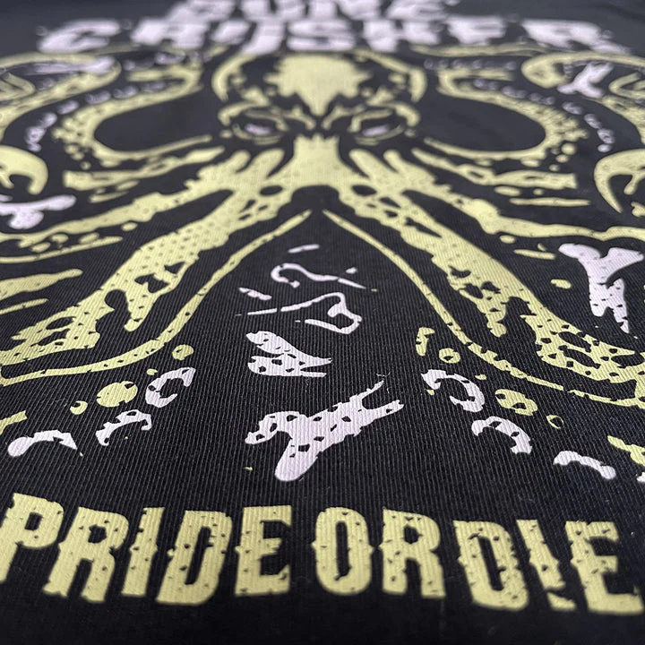 La leggenda continua con la T-shirt Pride or Die Bone Crusher 2.0, pensata per i veri guerrieri di gabbie e tatami. Il design potente e aggressivo raffigura una piovra che stritola ossa, simbolo di dominio, forza e controllo assoluto sul proprio avversario. Realizzata in cotone pettinato, offre una vestibilità confortevolee una sensazione di leggerezza ideale per ogni momento della giornata. Una t-shirt perfetta per chi vive la propria passione con intensità .