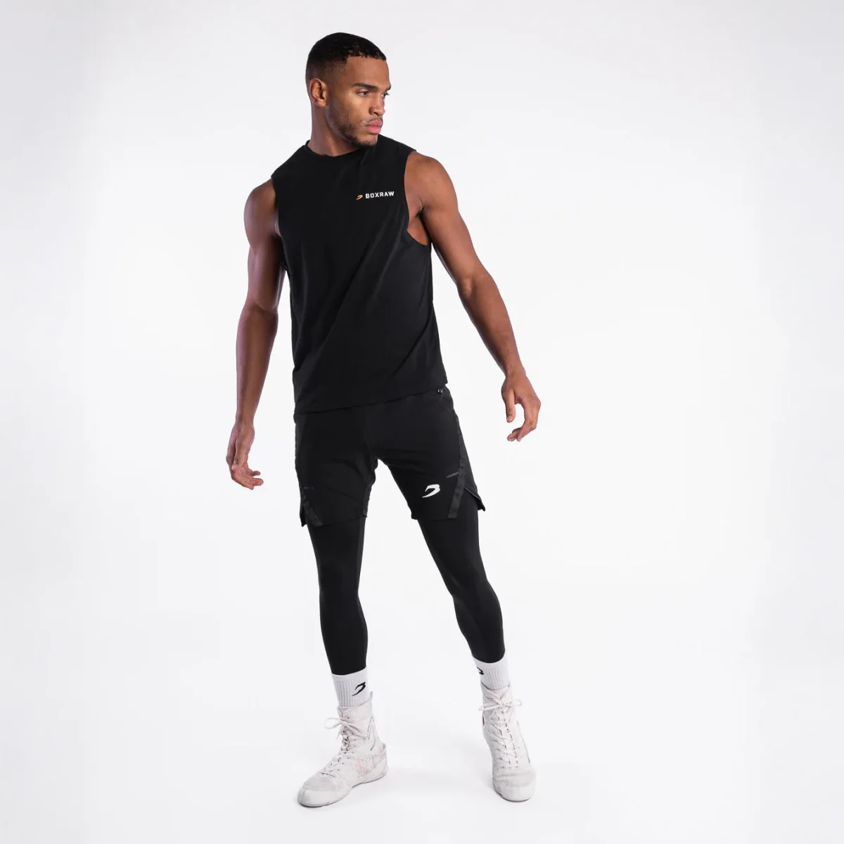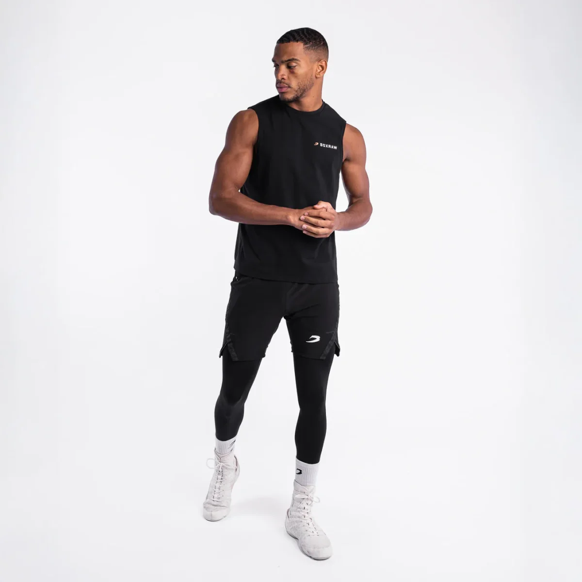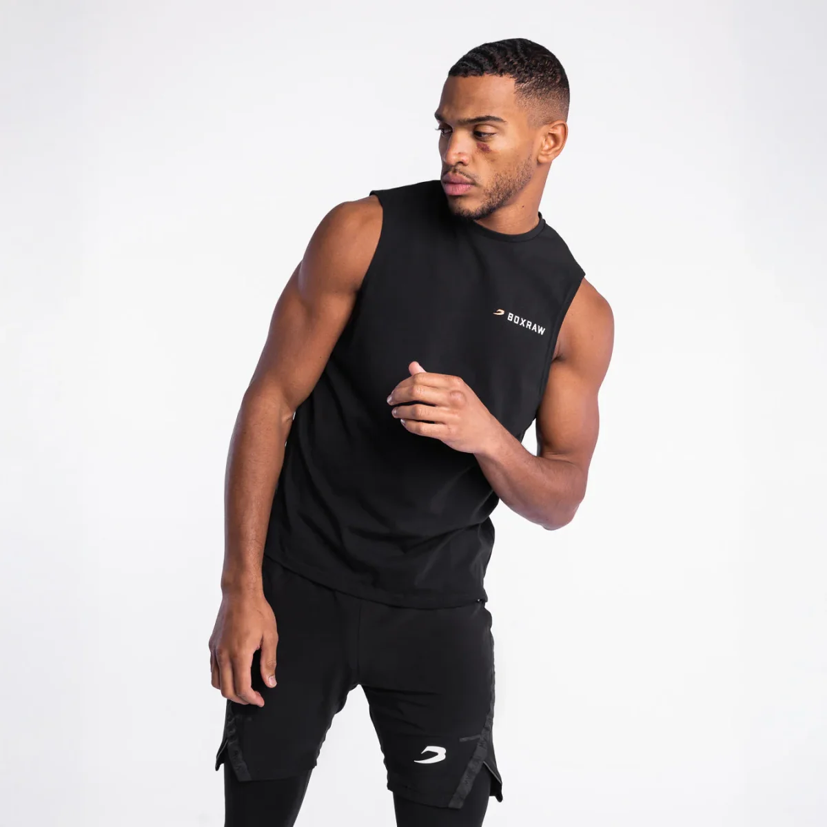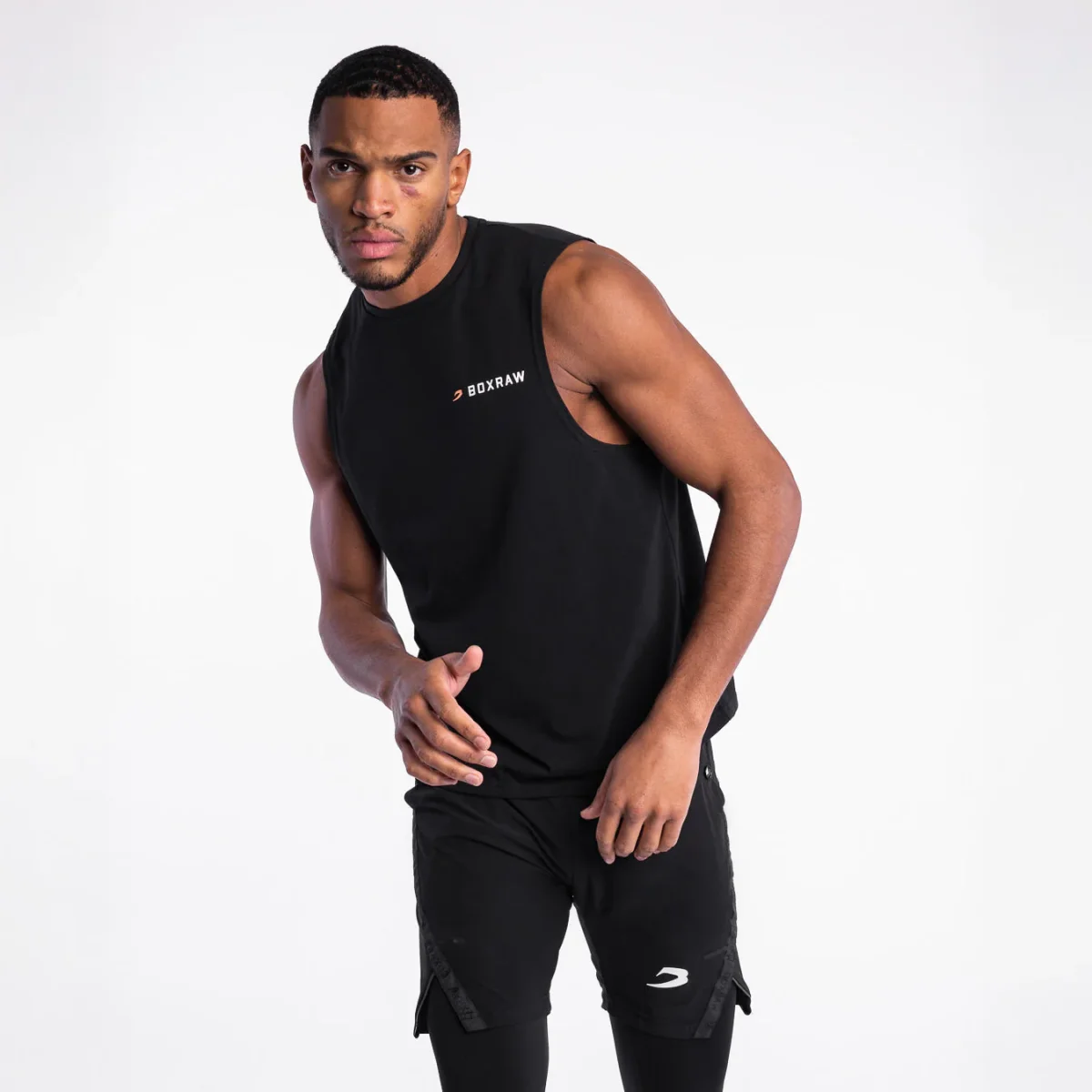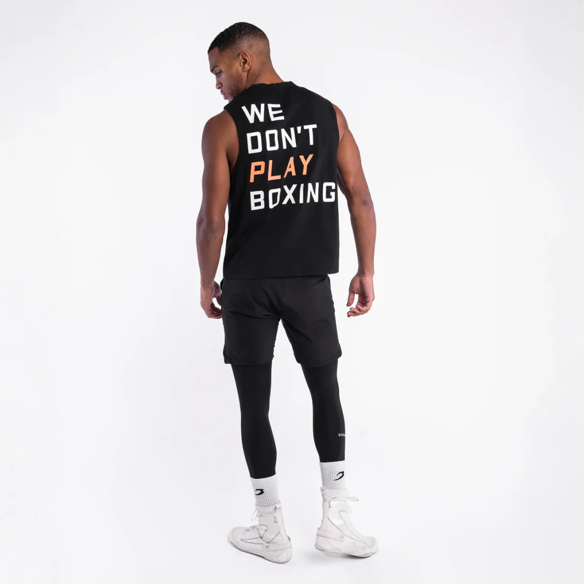 La T-shirt smanicata Boxraw We Don’t Play Boxing nera è progettata per offrire massima libertà di movimento e comfort durante l’allenamento. Realizzata in cotone elasticizzato, assicura una vestibilità slim e aderente, che segue le linee del corpo senza limitarlo. L’ampio giromanica lascia libere le braccia per ogni tipo di esercizio, mentre l’orlo dritto dona un look pulito e moderno. Sul petto è presente il logo Boxraw, mentre sul retro sul retro spicca con orgoglio l’iconico slogan WE DON’T PLAY BOXING®, manifesto di una disciplina che non è un gioco. Ideale per chi vive la boxe con intensità e determinazione.