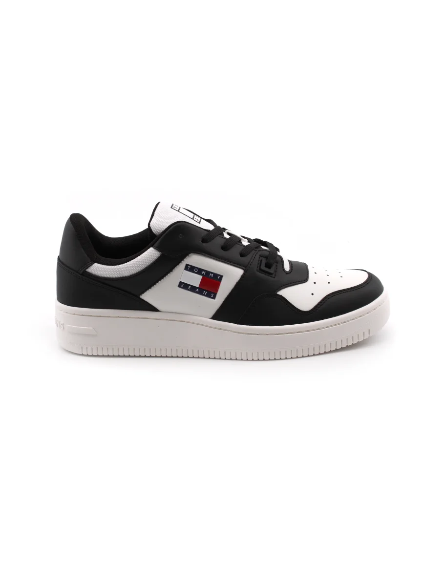 Tommy Jeans Tjm Retro Basket sneaker da uomo in vera pelle e tessuto con soffice sottopiede in tessuto e suola in gomma. Comoda e alla moda. Dal look retrò e streetwear.