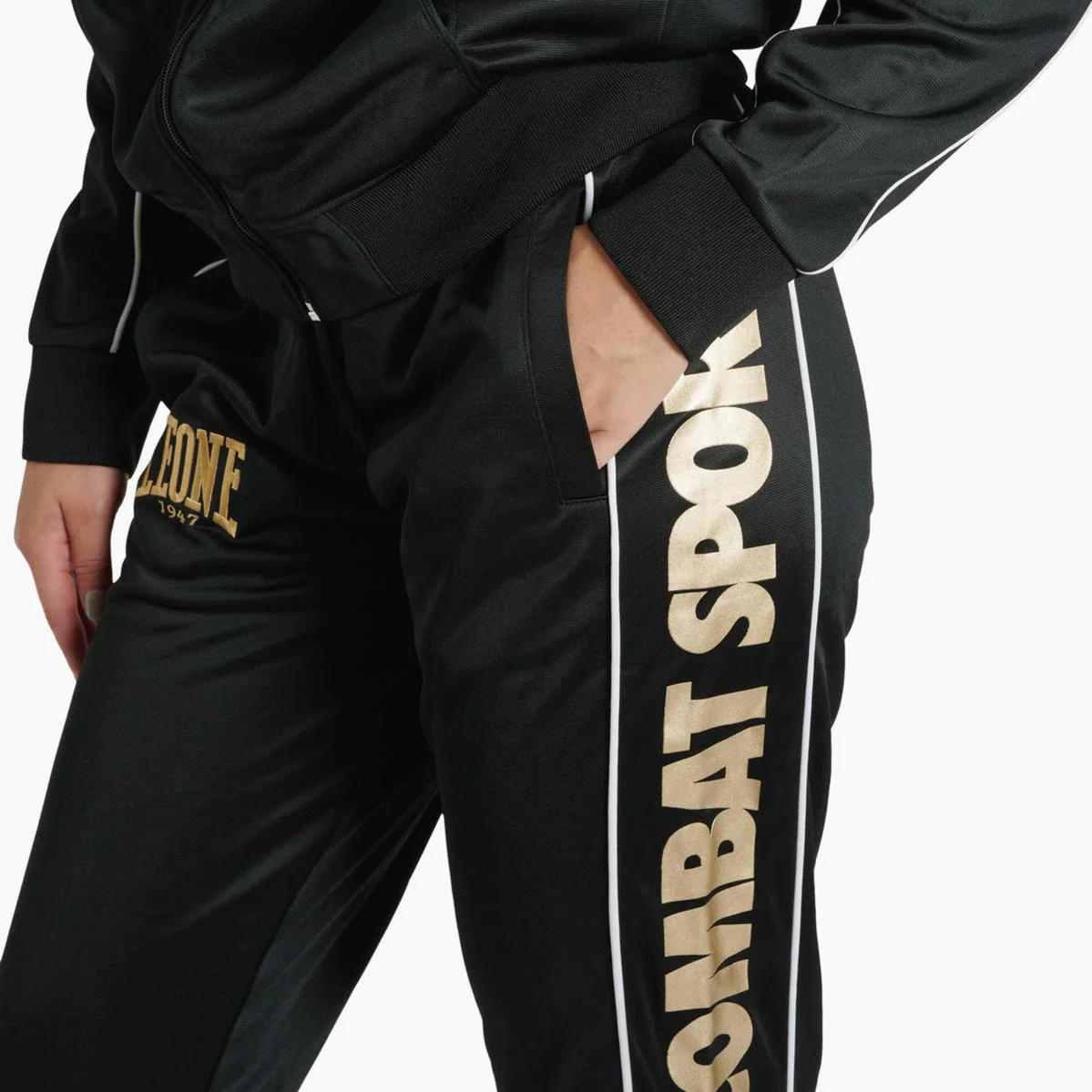 La tuta donna Leone Premium AB300W è la compagna giusta per accompagnarti in palestra e durante il tempo libero. Morbida e resistente, garantisce comfort, praticità e asciugatura rapida. Il colletto alto protegge dal vento, mentre grazie alla zip centrale la indossi con facilità . Il logo Leone su giacca e pantaloni completa un look pulito e deciso. I polsini in costina restano aderenti e stabili durante il movimento, mentre il taglio femminile segue le linee senza stringere. Perfetta per riscaldamento, sessioni leggere all’aperto o per arrivare in palestra con stile.