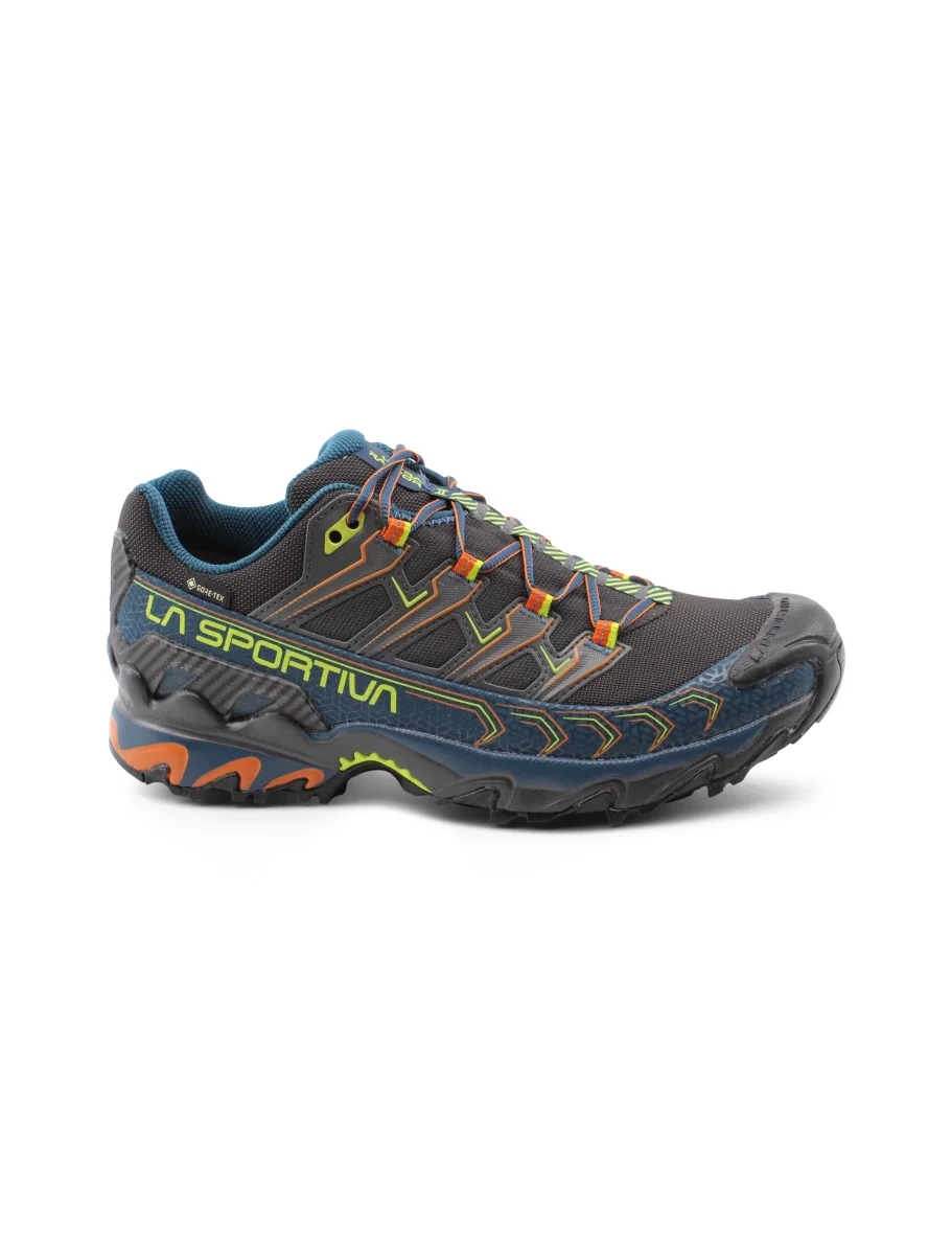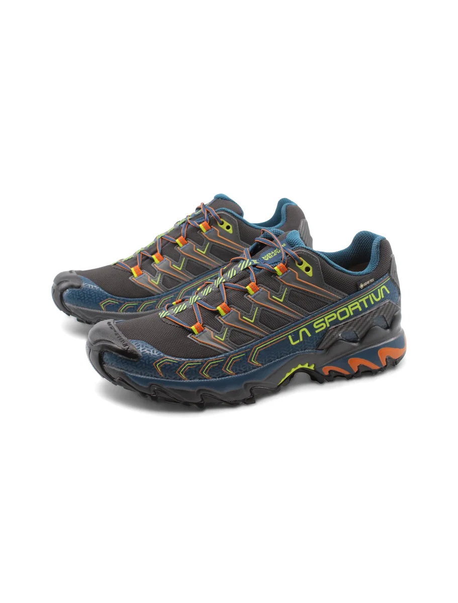 Scarpa da hiking uomo La Sportiva Ultra Raptor II Gtx in Air-Mesh traspirante, fodera in mesh con sistema Easy In per una migliore calzata, membrana Gore-Tex, plantare in tessuto Ortholite Hybrid Mountain Running, intesuola in Eva e suola FriXion White with IBS e puntalino in gomma anti-urto integrato per un grip ottimale su ogni tipo di terreno. Ideale per percorsi off-road a lunga distanza.