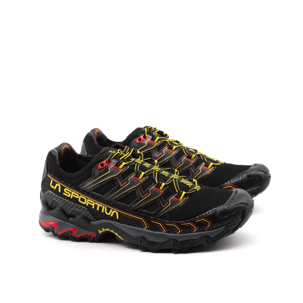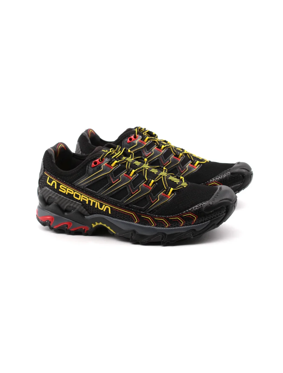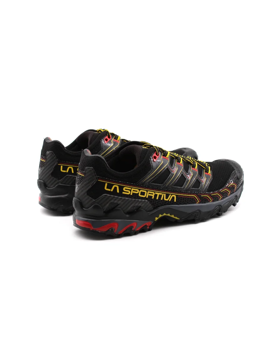 Scarpa da trail running uomo La Sportiva Ultra Raptor II in Air-Mesh traspirante, fodera in mesh con sistema Easy In per una migliore calzata, plantare in tessuto Ortholite Hybrid Mountain Runningk, intesuola in Eva e suola FriXion White with IBS e puntalino in gomma anti-urto integrato per un grip ottimale su ogni tipo di terreno. Ideale per percorsi off-road a lunga distanza.