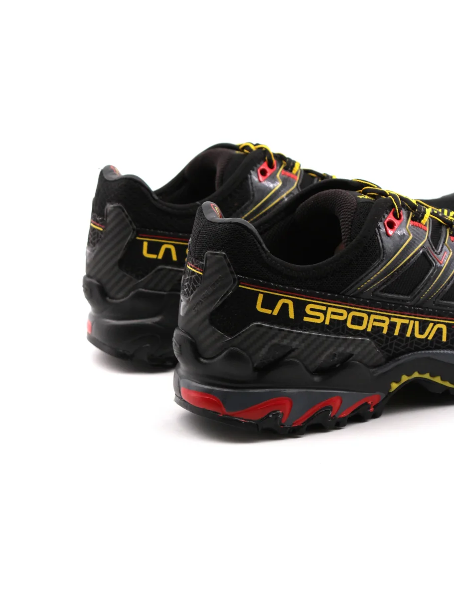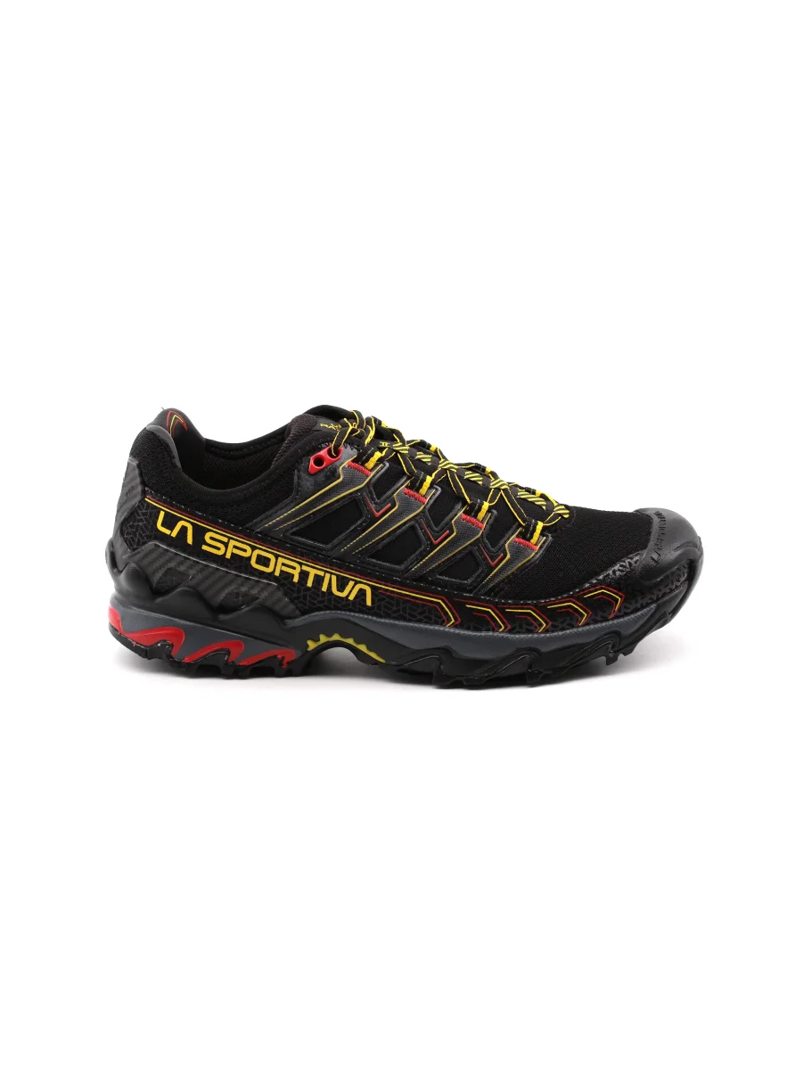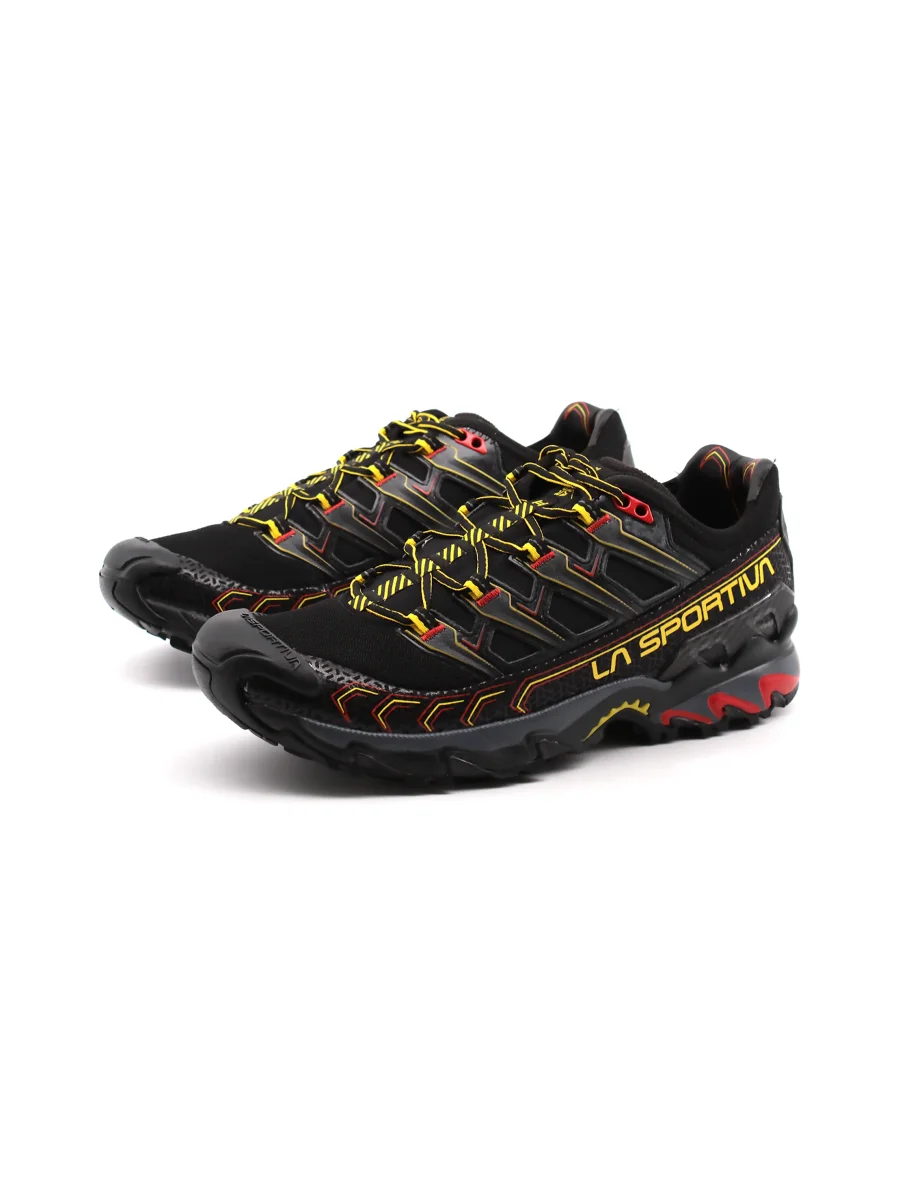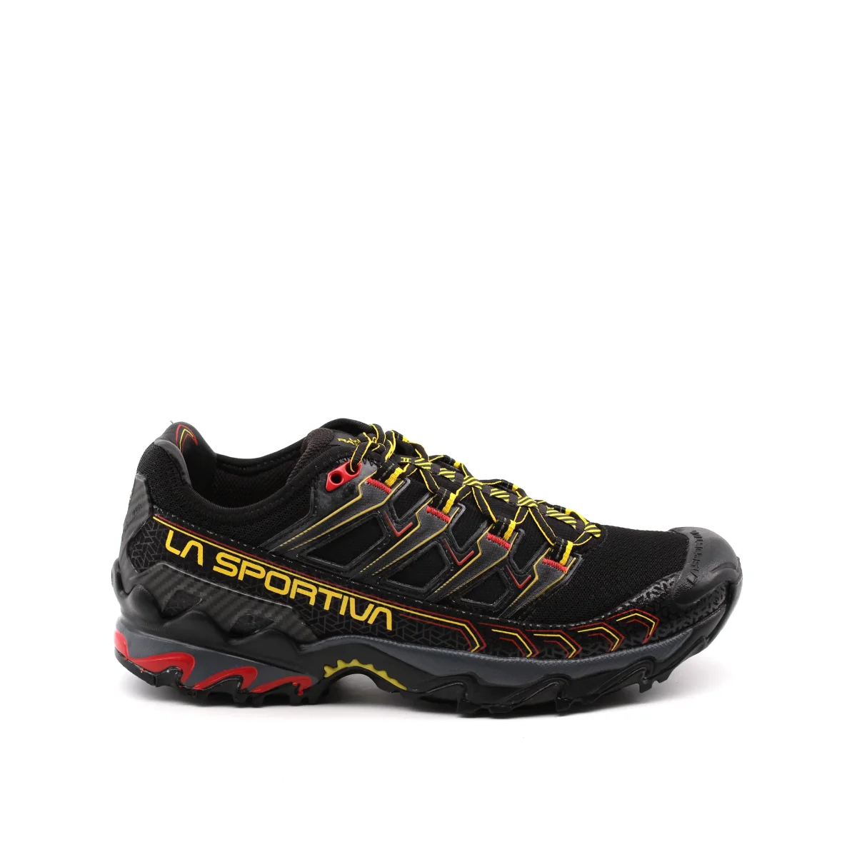 Scarpa da trail running uomo La Sportiva Ultra Raptor II in Air-Mesh traspirante, fodera in mesh con sistema Easy In per una migliore calzata, plantare in tessuto Ortholite Hybrid Mountain Runningk, intesuola in Eva e suola FriXion White with IBS e puntalino in gomma anti-urto integrato per un grip ottimale su ogni tipo di terreno. Ideale per percorsi off-road a lunga distanza.