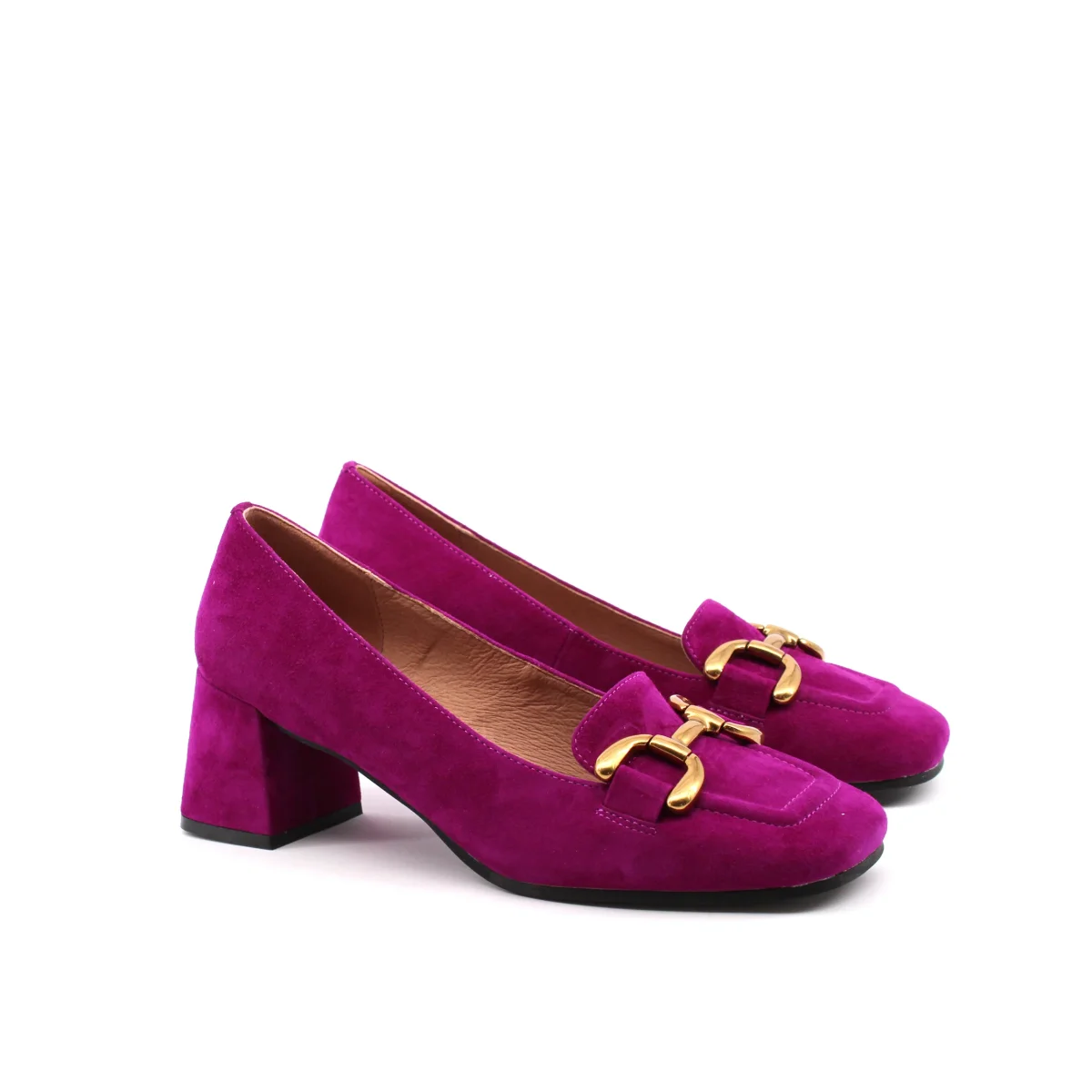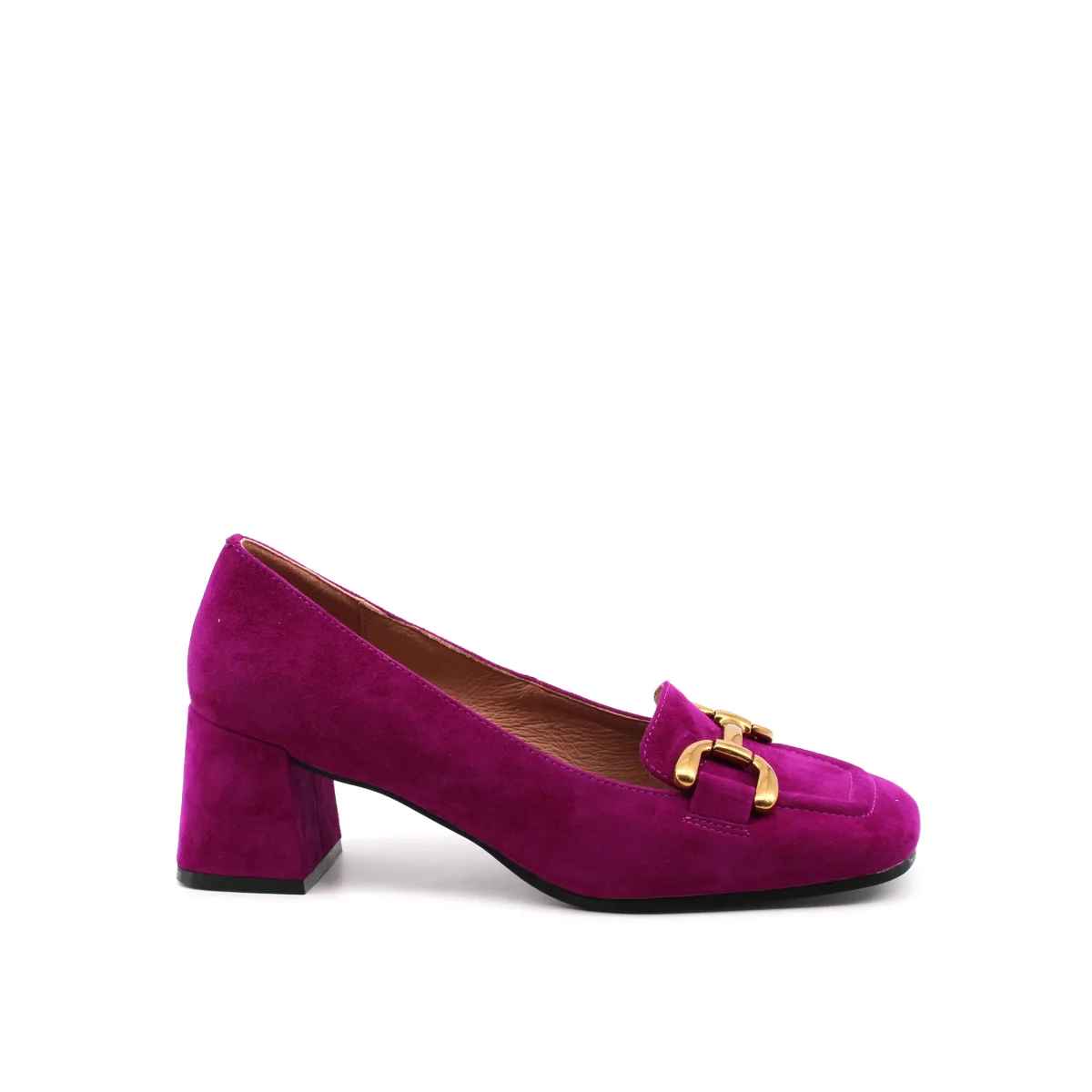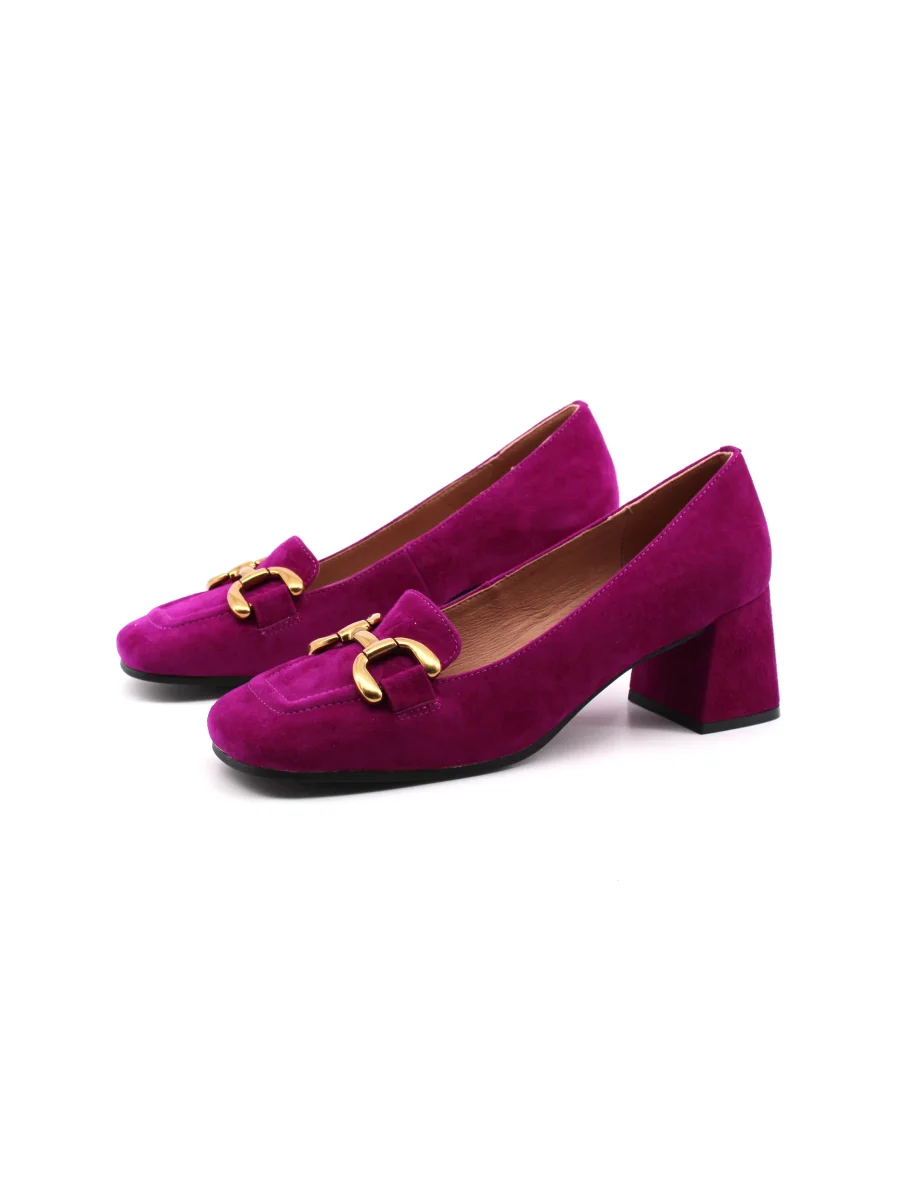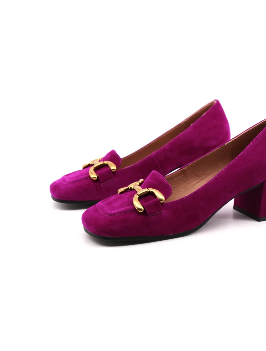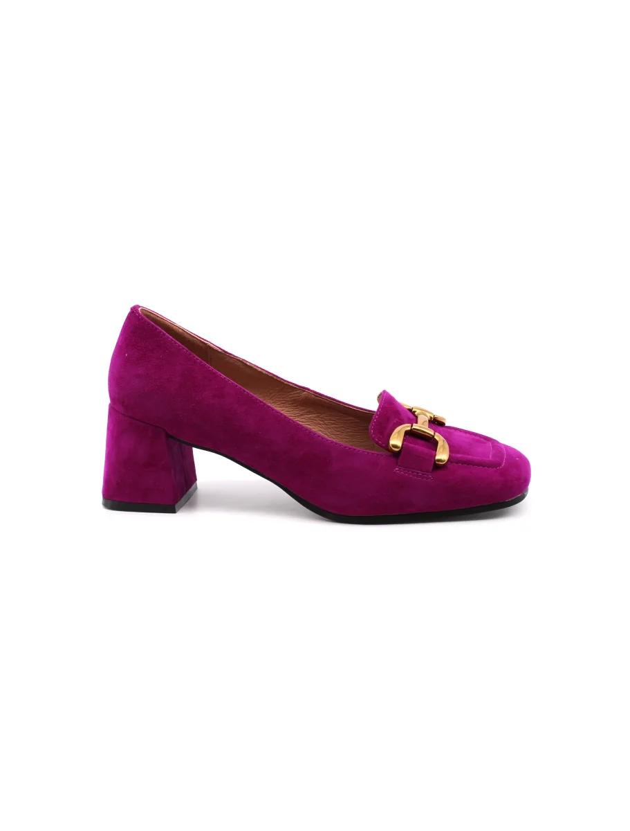Bibi Lou Valencia mocassino con tacco da donna in vera pelle scamosciata con morsetto dorato, morbido plantare in vera pelle e suola in gomma. Comodo, alla moda ed elegante.