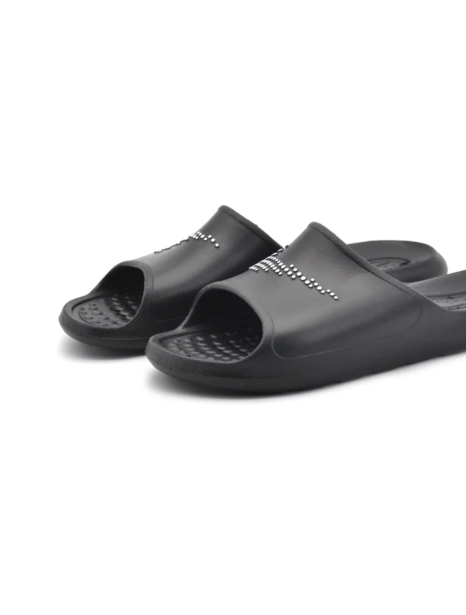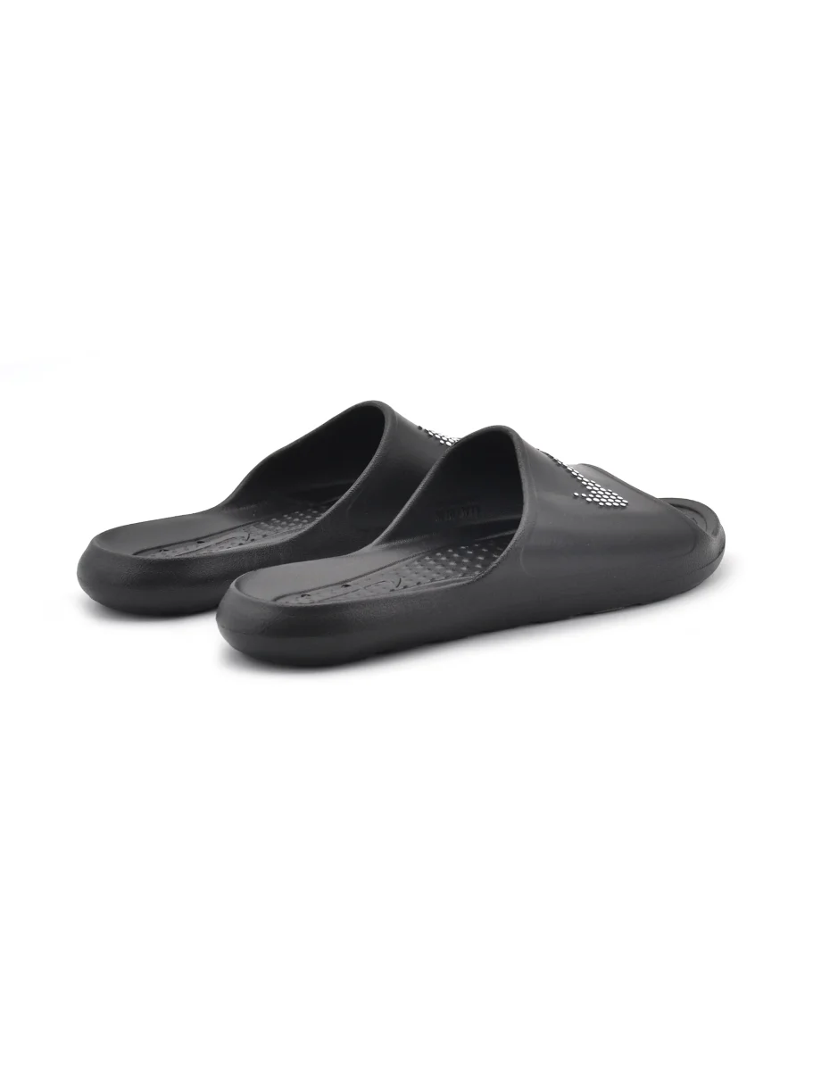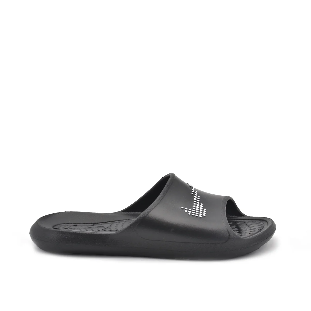 Ciabatta a fascia da piscina da uomo Nike Victori One Shower Slide in gomma nera con logo bianco, comoda e versatile ideale per le calde giornate estive