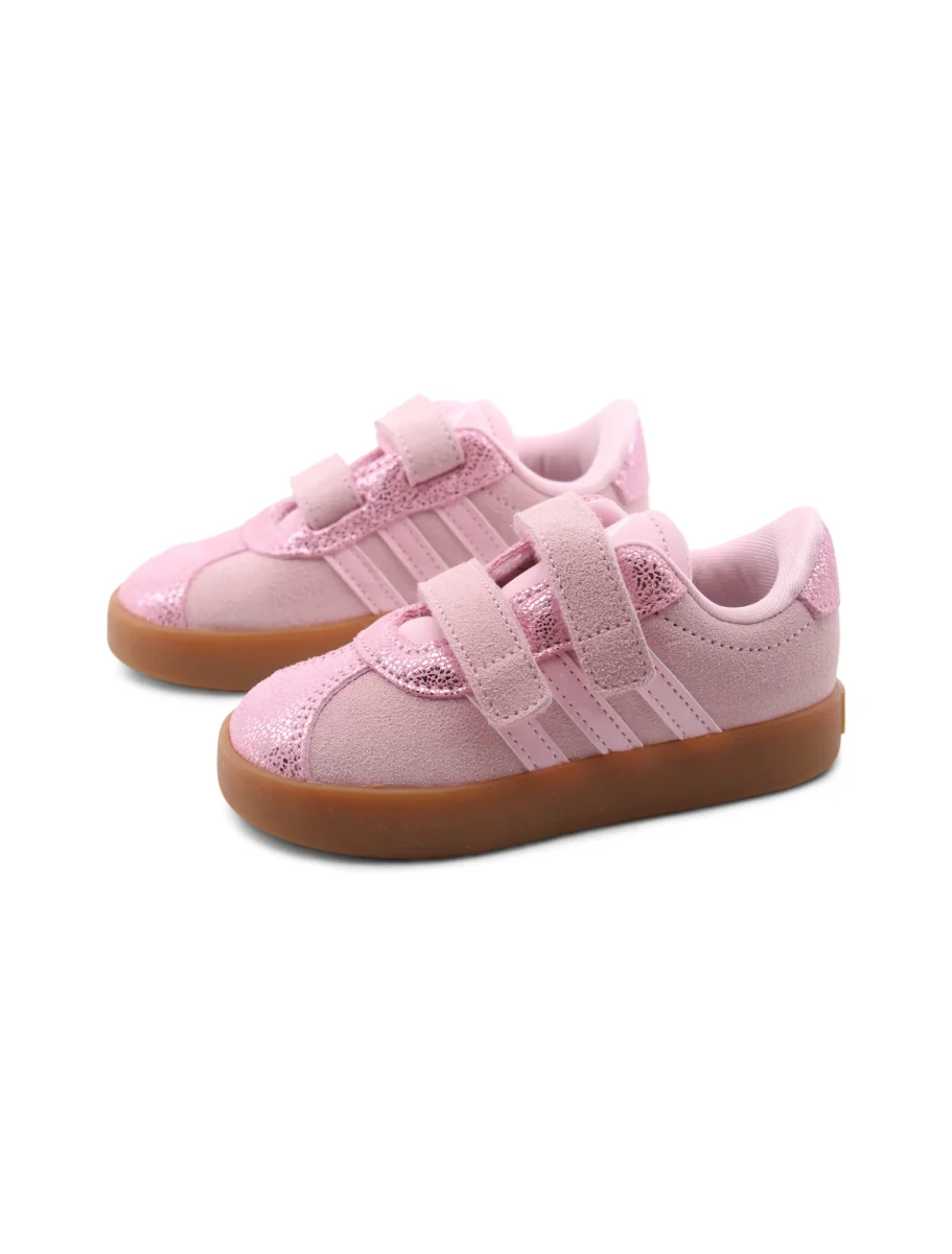 Le VL Court 3.0 CF I di Adidas sono le sneaker perfette per le piccole avventuriere. La tomaia in pelle scamosciata non solo conferisce un look trendy, ma è anche morbida e confortevole, adattandosi ai movimenti senza limitazioni.