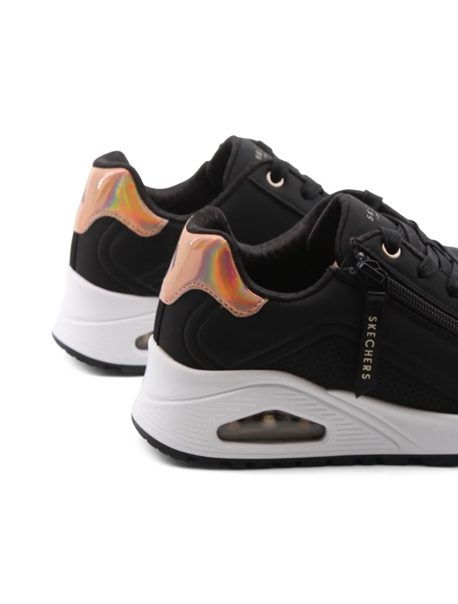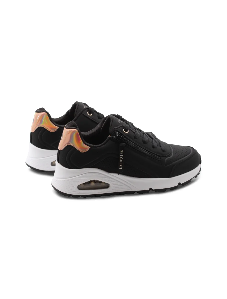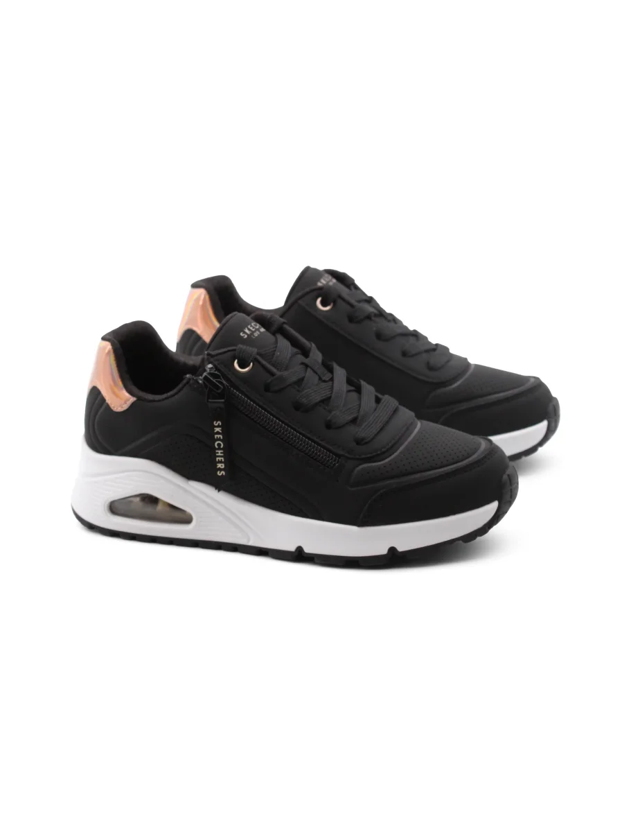 La sneaker Zip And Stride di Skechers è pensata per le piccole esploratrici che desiderano comfort e stile in ogni passo. La chiusura con lacci e zip rende facile indossarle e toglierle, perfetta per le bambine sempre in movimento. La fodera in tessuto è morbida e traspirante, garantendo una sensazione di freschezza durante le giornate più lunghe.