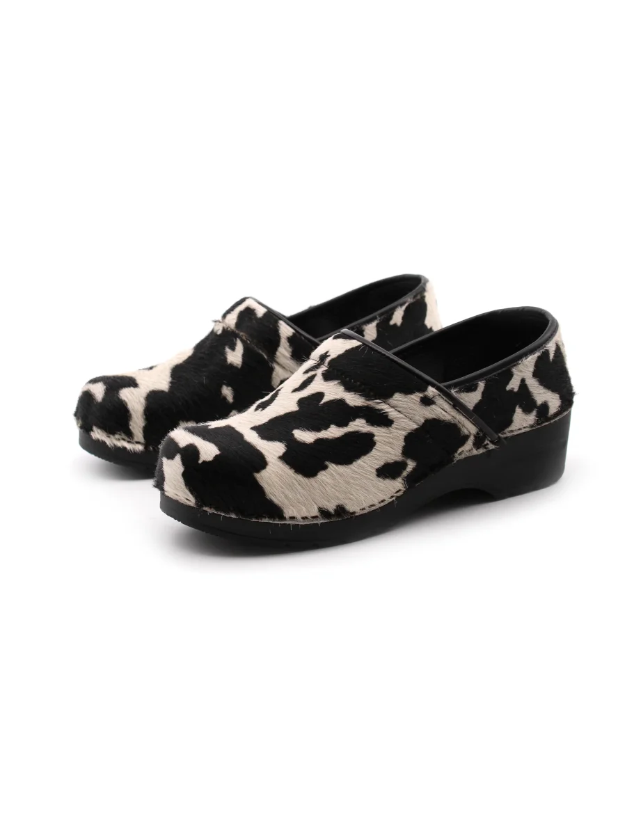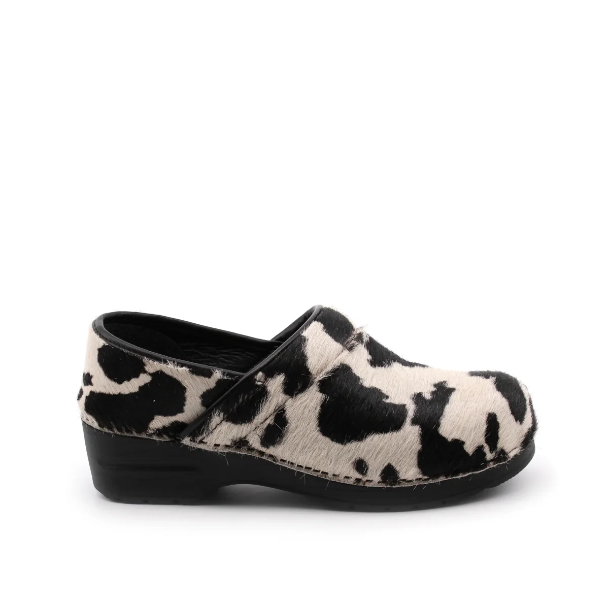 Zoccolo da donna Glove made in Italy in tessuto animalier con morbido sottopiede in vera pelle e fondo in gomma. Comodo e alla moda.
