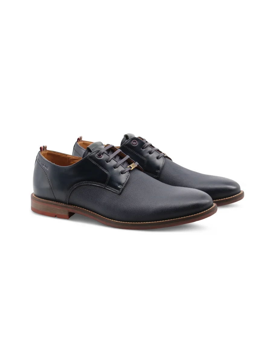 Stringata derby blu in vera pelle uomo